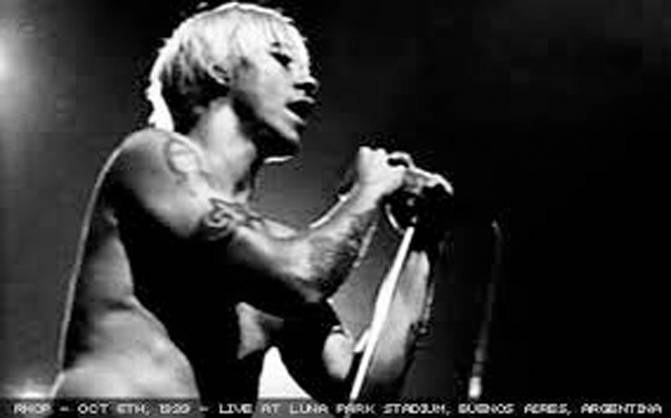Red Hot Chili Peppers es una banda de funk rock estadounidense formada en 1983 en Los Ángeles, California. El estilo musical de la banda fusiona el funk tradicional con el rock y el rock alternativo incluyendo elementos de otros géneros como el rap, pop rock, heavy metal, dance, punk, hip hop e indie rock .Son considerados los inventores del punk funk. Los Chili Peppers comenzaron en su escuela de Los Ángeles en 1983 cuando tres amigos de Fairfax High School, Michael Blazary (más conocido como "Flea"), Hillel Slovak y Jack Irons formaron una banda llamada Anthym. Pronto se les unió Anthony Kiedis, quien venía de trabajar como actor interpretando al hijo de Sylvester Stallone en la película 'F.I.S.T.', otro amigo de Fairfax. El punk de L.A. estaba en ese entonces en su apogeo con bandas como los Go-Go's, los Germs, Black Flag y los Circle Jerks dominando la escena. Para su primer show como un cuarteto, Anthym se cambiaron su nombre a "Tony Flow and the Miraculously Majestic Masters of Mayham", pero, quizás viendo que el nombre era un poco incómodo, se decidieron una vez por todas por "Red Hot Chili Peppers". La banda rápidamente se hizo conocida en Los Ángeles tanto por su prácticas sobre el escenario como por su original mezcla de punk y el funk clásico. En una presentación en el Kit Kat Club, la banda volvió al escenario desnudos excepto por calcetines puestos en un lugar estratégico.